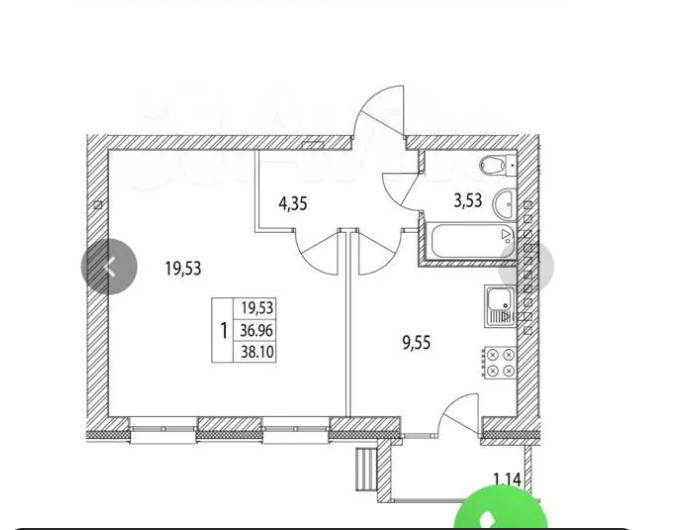 Квартира общей площадью 38,1 м² с продуманной планировкой станет уютным гнездышком для самостоятельной жизни. Просторная жилая комната (19,5 м²) и функциональная кухня (9,5 м²) открывают безграничные возможности для реализации дизайнерских идей.